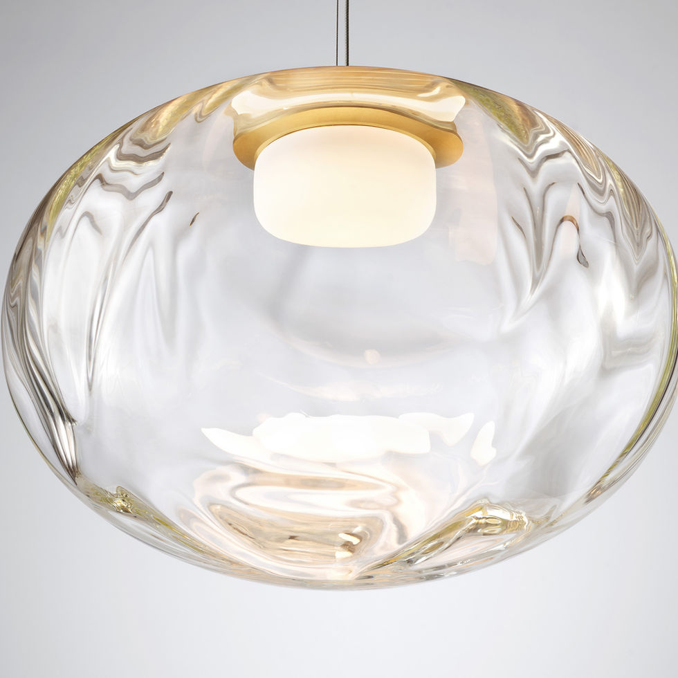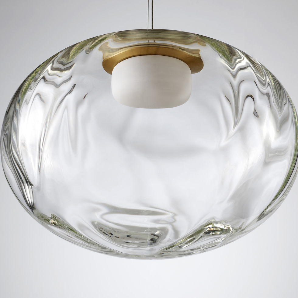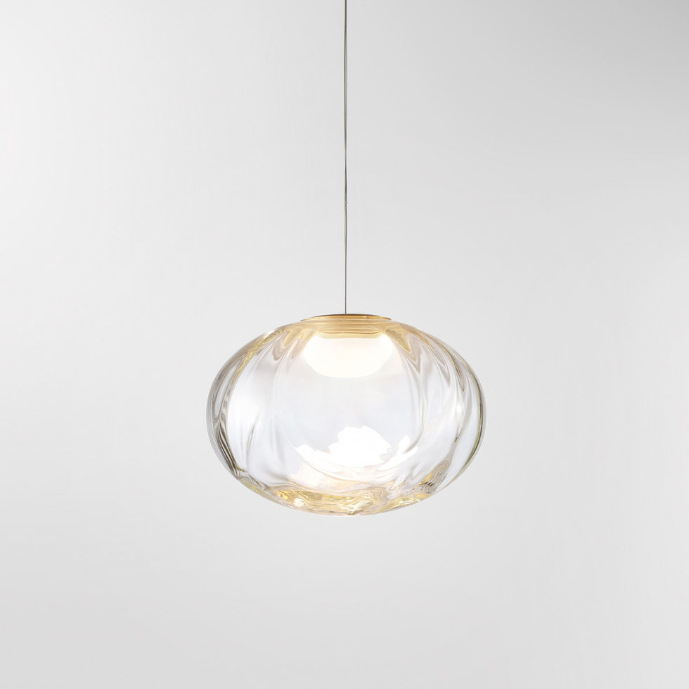 Méne vekker en følelse av undring og tiltrekning mot det himmelske. Objektene fremstår som måneaktige silhuetter, svevende varsomt i rommet. Serien er laget i munnblåst glass som fremhever det unike og levende uttrykket i hver enkelt kuppel, svakt opplyst og med en egen struktur. Den bølgende formen er et resultat av studioets kontinuerlige eksperimentering med tradisjonelle teknikker for optisk glassblåsing kombinert med nyskapende ingeniørkunst. Resultatet er en helt særegen glasstekstur som varierer fra lampe til lampe. Hver glasskjerm blåses for hånd i Australia og monteres i studioet vårt i Melbourne. Méne pendellampe leveres i et utvalg munnblåste glassvarianter, kombinert med en presist bearbeidet lampebase i champagnefarget anodisert aluminium.