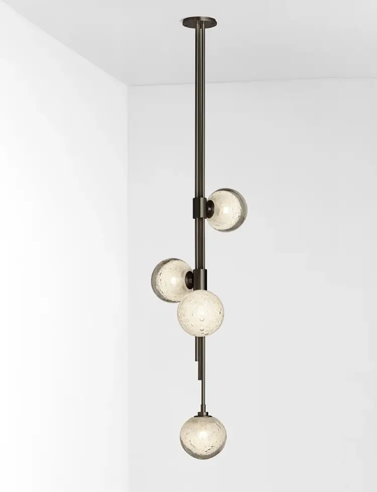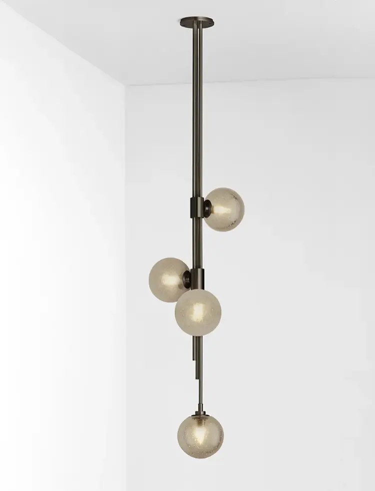 Trilogy collection exemplifies contemporary sophistication of yesteryear drawing from art deco imaginings with staggered rods, jewel like cuff detailing and mouth-blown orbs. Showcasing deceptively sophisticated engineering, a hallmark of Articolo’s growing body of work, the breath-taking Trilogy marries finely crafted metalwork with the superb beauty of artisan glass.