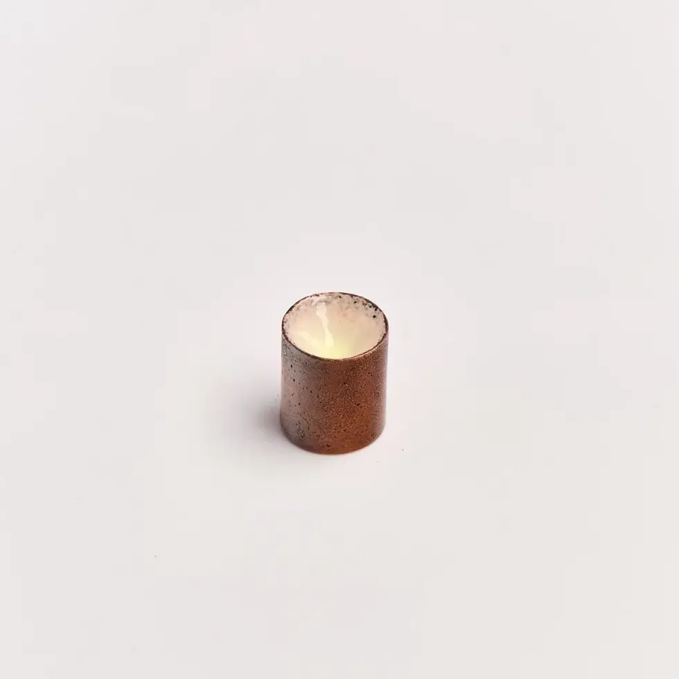 Sandstøpte kobberhåndtak for møbler, tilgjengelig i to størrelser: Ø30 mm og Ø18 mm. Senter i glassemalje (vitreous enamel) i ulike farger. Leveres også som dørknott. Utførelse i patinert kobber, forseglet med bivoks. Små fargeforskjeller og variasjoner er en naturlig del av brenningsprosessen. Kontakt oss for pris.