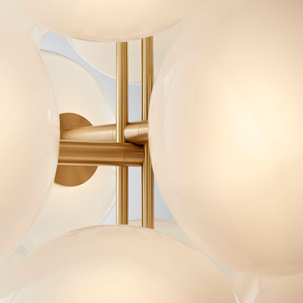 Inspirert av skyers svevende skjønnhet uttrykker Aeris en følelse av letthet og mykhet gjennom gjentakelsen av skulpturelle former. Resultatet er et luftig midtpunkt i rommet. Hver munnblåst glassky kombineres med vertikale messingstaver, presist utformet med et arkitektonisk preg som forsterker inntrykket av vektløshet. Den doble messingsøylen definerer lampens karakter og skaper balanse og helhet i uttrykket. Aeris leveres i fire distinkte glasstoner, som hver gir lampen et unikt nærvær – fra et mykt hvitt skinn og morgensolens varme glød til det diskrete lyset fra en sølvkantet sky. Hver glassky har en naturlig, håndlaget tekstur som demper og sprer lyset i et behagelig og jevnt skinn. Lampen er håndlaget i Australia og monteres for hånd i vårt studio i Melbourne. Aeris kan leveres med ulike glassvarianter og kombineres med rammeverk i håndpolert messing, bronse eller sortpatinert messing.