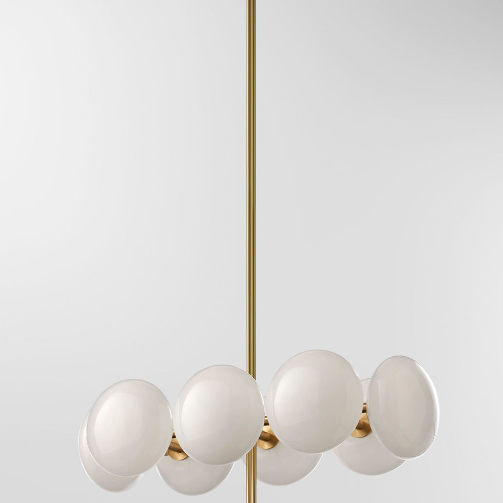 Inspirert av skyers svevende skjønnhet uttrykker Aeris en følelse av letthet og mykhet gjennom gjentakelsen av skulpturelle former. Resultatet er et luftig midtpunkt i rommet. Hver munnblåst glassky kombineres med vertikale messingstaver, presist utformet med et arkitektonisk preg som forsterker inntrykket av vektløshet. Den doble messingsøylen definerer lampens karakter og skaper balanse og helhet i uttrykket. Aeris leveres i fire distinkte glasstoner, som hver gir lampen et unikt nærvær – fra et mykt hvitt skinn og morgensolens varme glød til det diskrete lyset fra en sølvkantet sky. Hver glassky har en naturlig, håndlaget tekstur som demper og sprer lyset i et behagelig og jevnt skinn. Lampen er håndlaget i Australia og monteres for hånd i vårt studio i Melbourne. Aeris kan leveres med ulike glassvarianter og kombineres med rammeverk i håndpolert messing, bronse eller sortpatinert messing.